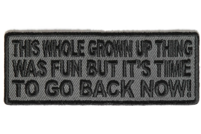 This whole grown up thing was fun but I'm ready to go back now Patch is embroidered in Gray / Black. Measures 4x1.5 inches. The patch can be sewn or ironed on. Do not iron on patches to leather or nylon material. Buy them cheaper with a wholesale account. Resell them on Ebay.