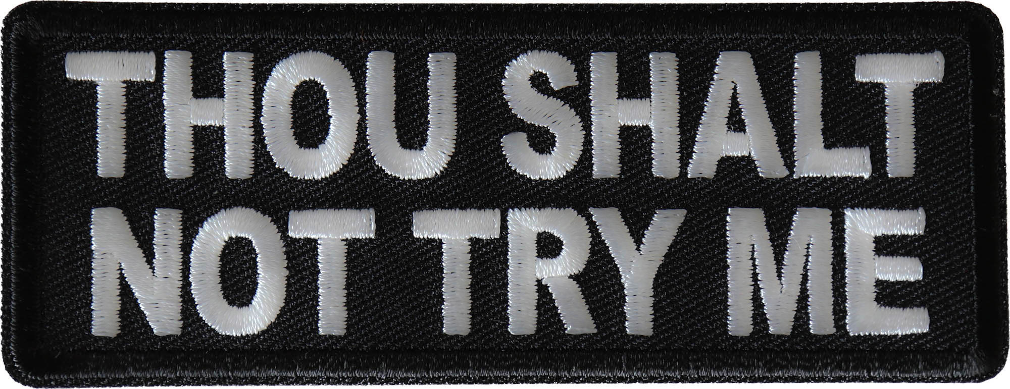 Thou Shalt Not Try Me Funny Iron on Patch - 4x1.5 inch