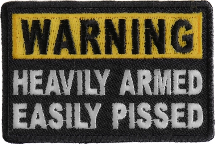 - Warning Heavily Armed Easily Pissed Funny Iron on Patch