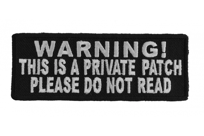 Warning This is a Private Patch Please Do Not Read it Patch is embroidered in Black / White. Measures 4x1.5 inches. The patch can be sewn or ironed on. Do not iron on patches to leather or nylon material. Buy them cheaper with a wholesale account. Resell them on Ebay.