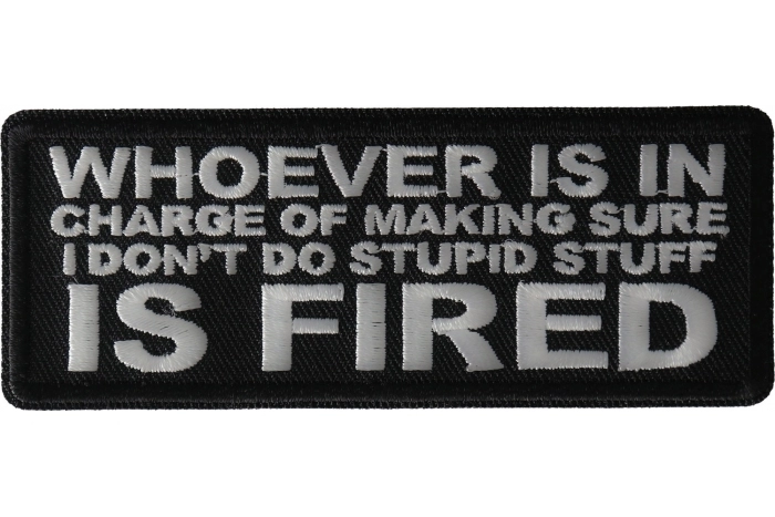 Whoever is in Charge of Making Sure I Don't Do Stupid Stuff is Fired Funny Iron on Patch - 4x1.5 inch