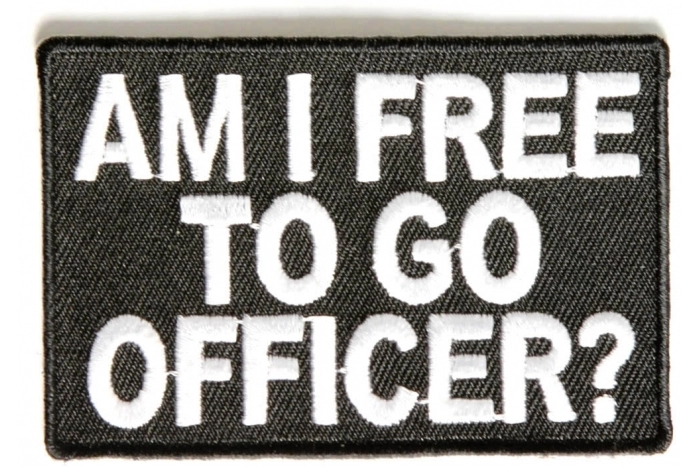 Am I free to go officer patch is embroidered in white and measures 3x2 inches.