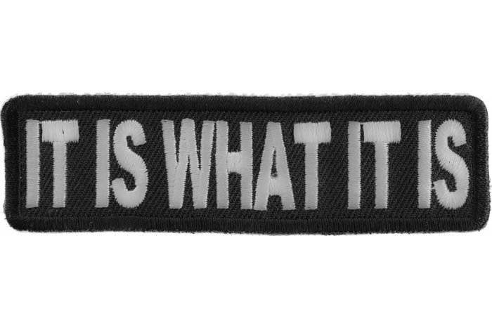 It is what it is patch is just what it is. Embroidered and measures 3.5x1 inch. Sometimes you just tell people "It is what it is".