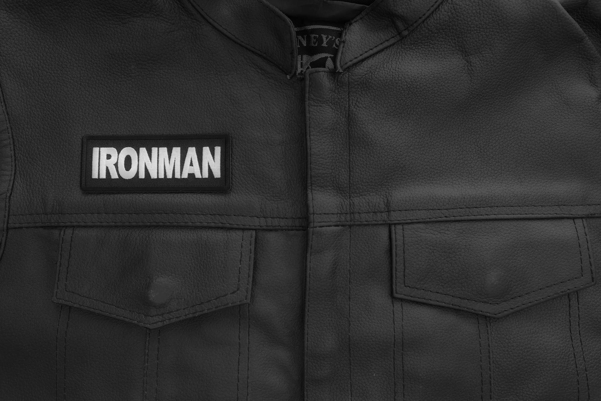 Ironman Patch measures 4x1.5 inches and is Embroidered in Black / White. The patch can be sewn on to Leather Biker Jackets, Vests or Chaps. The patch can also be ironed on to Shirts, Hats or Denim material such as Jeans. Features plastic iron on backing and clean laser cut embroidered borders. Japanese made iron on glue requires temperature between 270-290 Degrees Fahrenheit. Use a heat press for 30 seconds to adhere the patch permanently to your clothing. Using a regular household iron will probably not be as permanent as one hopes. If possible we recommend you sew on your patches for a more durable application. Never iron on patches to Leather or Nylon materials.