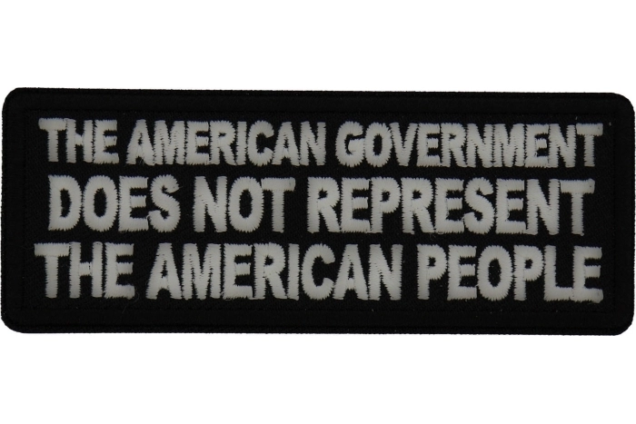 The American Government Does Not Represent The American People Patch measures 4x1.5 inches and is Embroidered in Black / White. The patch can be sewn on to Leather Biker Jackets, Vests or Chaps. The patch can also be ironed on to Shirts, Hats or Denim material such as Jeans. Features plastic iron on backing and clean laser cut embroidered borders. Japanese made iron on glue requires temperature between 270-290 Degrees Fahrenheit. Use a heat press for 30 seconds to adhere the patch permanently to your clothing. Using a regular household iron will probably not be as permanent as one hopes. If possible we recommend you sew on your patches for a more durable application. Never iron on patches to Leather or Nylon materials.