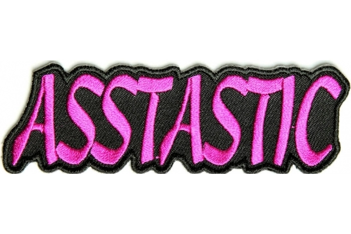Asstastic patch measures 4x1.25 inches. It is embroidered in purple like pink over black. Perfect patch to iron on the back of your jeans, right over the but cheek pocket.