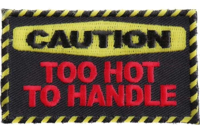 Caution Too Hot To Handle Patch - 3x1.75 inch