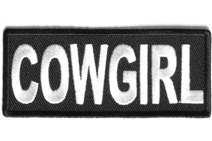 Cowgirl patch for cowgirls is embroidered in white over black on this 3.5x1.5 inch patch.