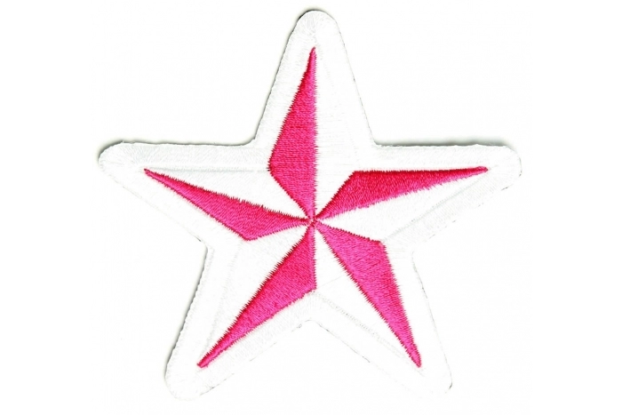 Pink and White star patch measures 3x3 inches. Embroidered like a nautical star pattern in white and pink. Also available in other colors.