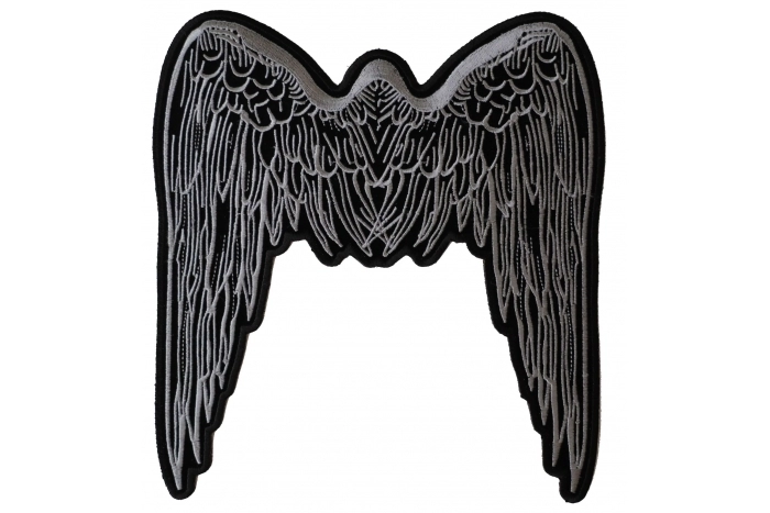 Large Angel Wings Patch Measuring Size: 9x8 inch. In tones of Grey or Silver. Embroidered, can be sewn or ironed on. A great patch for lady riders. Also comes in Purple/Pink and Blue as well. See related products below for more sizes and colors. (This patch does come in a small size as well in all three color combinations).