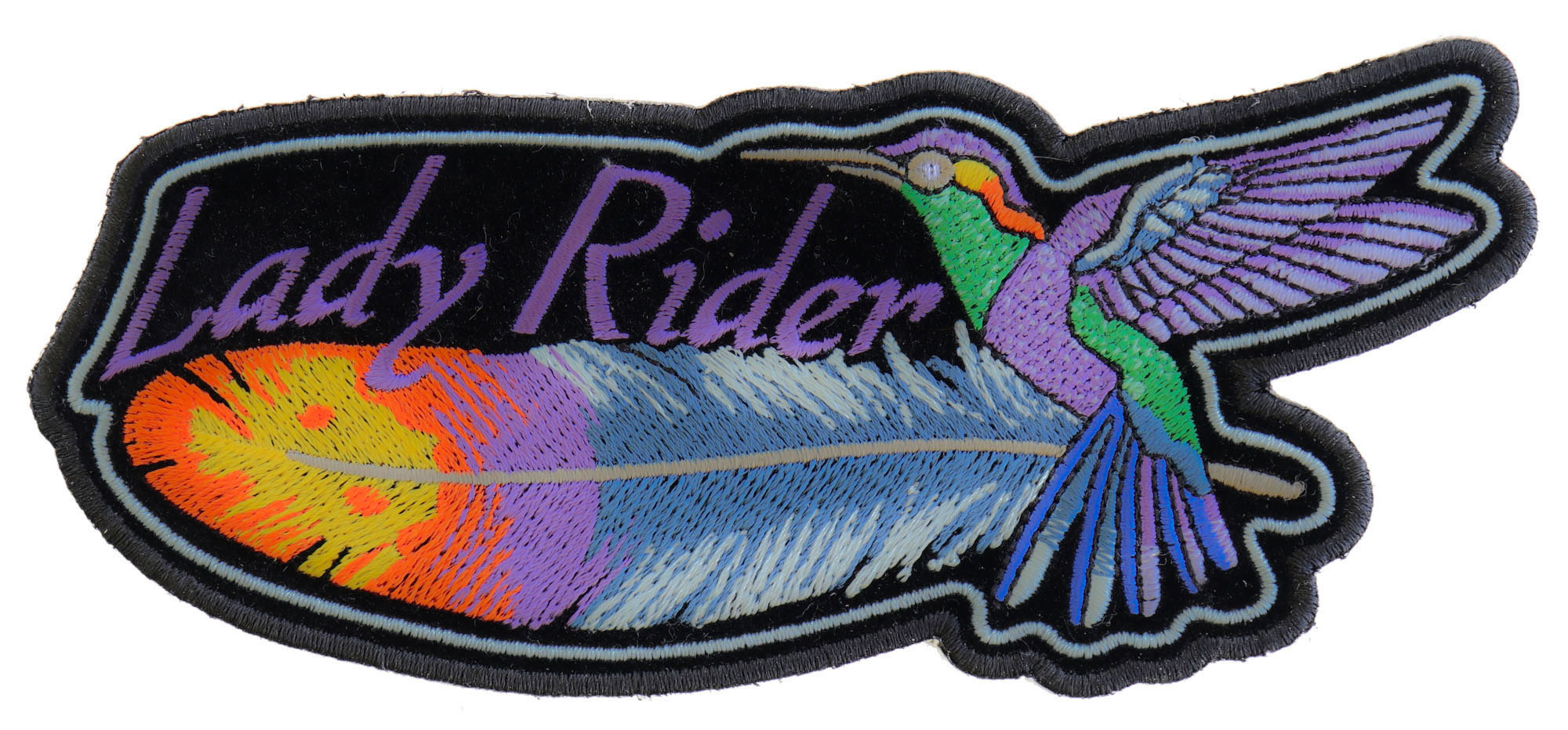 - Hummingbird Lady Rider Feather Small Iron on Biker Patch