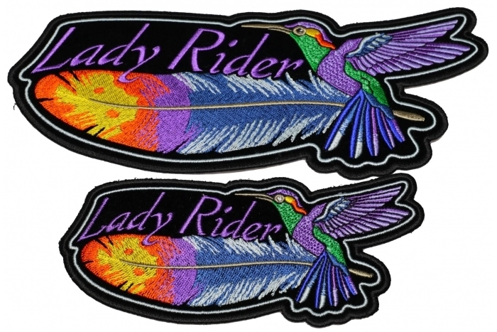 - set of 2 Medium and Large Lady Rider Hummingbird Patches
