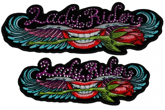Set of 2 Small and Medium Lady Rider Patches with Crystals