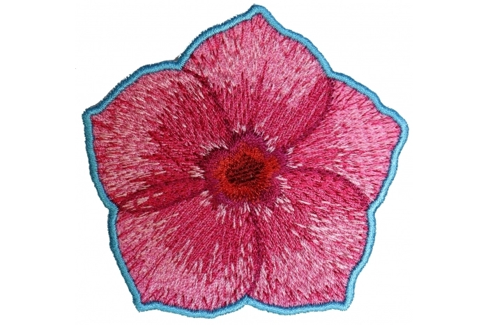 Pink Flower Petal Patch measures 3x3 inches and is Embroidered in Blue / Pink. The Small Patch can be sewn on or ironed on to clothing such as Denim or Leather Jackets, Vests, Hats, Back Packs, Shirts. Features plastic backing and embroidered die cut borders.