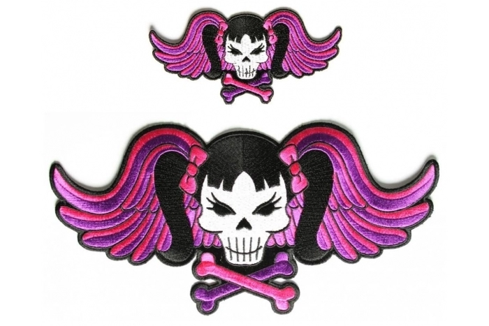Pink Skull Patches With Wings For Ladies Small and Large Set