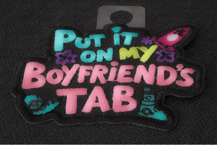 Put it on my Boyfriend's tab Patch measures 3x3 inches and is Embroidered in Black / Blue / Purple / Pink. The patch can be sewn on to Leather Biker Jackets, Vests or Chaps. The patch can also be ironed on to Shirts, Hats or Denim material such as Jeans. Features plastic iron on backing and clean laser cut embroidered borders. Japanese made iron on glue requires temperature between 270-290 Degrees Fahrenheit. Use a heat press for 30 seconds to adhere the patch permanently to your clothing. Using a regular household iron will probably not be as permanent as one hopes. If possible we recommend you sew on your patches for a more durable application. Never iron on patches to Leather or Nylon materials.