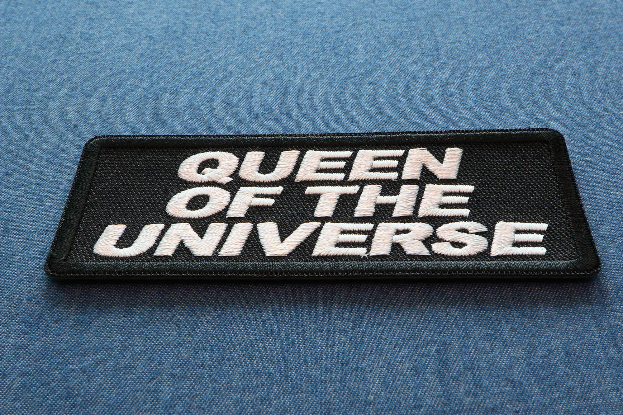 Queen of the Universe Patch measures 4x1.5 inches and is Embroidered in Black / White. The patch can be sewn on to Leather Biker Jackets, Vests or Chaps. The patch can also be ironed on to Shirts, Hats or Denim material such as Jeans. Features plastic iron on backing and clean laser cut embroidered borders. Japanese made iron on glue requires temperature between 270-290 Degrees Fahrenheit. Use a heat press for 30 seconds to adhere the patch permanently to your clothing. Using a regular household iron will probably not be as permanent as one hopes. If possible we recommend you sew on your patches for a more durable application. Never iron on patches to Leather or Nylon materials.