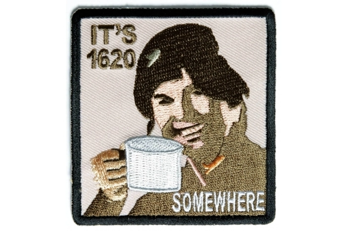 It's 1620 Somewhere is a popular phrase amongst Soldiers talking about it's time to call it quits and have a drink. Our saluting soldier embroidered on this patch does have a coffee mug on his hand though. We are not sure whether he means to have a cup of Joe, Whiskey or Beer. Regardless it is a comedy patch that measures 3 inches and will fit almost anywhere on your jacket.