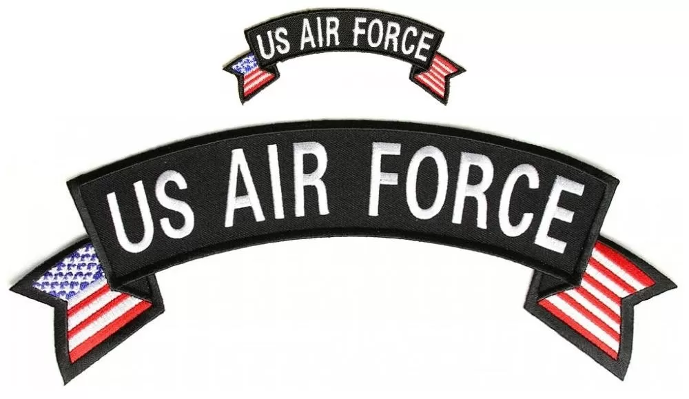 US Air Force Rocker Patches Small and Large With US Flag Tips - 4 - 11 inches, Embroidered