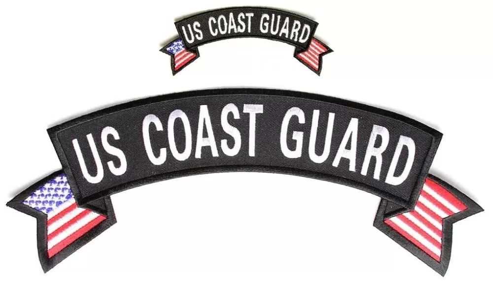US COAST GUARD Small and Large 2 Piece Rocker Patch Set With US Flag Tips - 4 - 11 inches, Embroidered