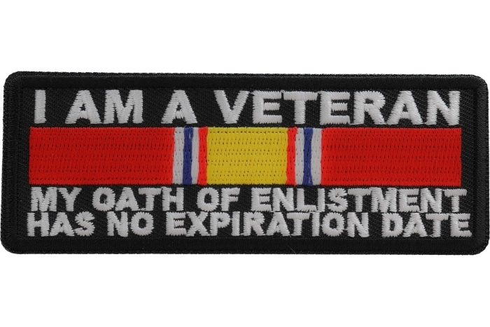 - I Am A Veteran My Oath Of Enlistment Has No Expiration Date Patch with National Defense Ribbon