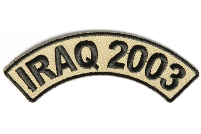 The Iraq 2003 Rocker Patch is an embroidered patch measuring 4 x 1.5 inches. The patch features black embroidered writing upon a tan background. This would make an ideal patch for all Iraq/Gulf War vets.