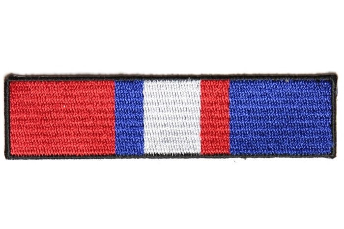 Kosovo Campaign Ribbon measures 4x1 inches and is Embroidered in Black / Blue / White / Red. The Small Patch can be sewn on or ironed on to clothing such as Denim or Leather Jackets, Vests, Hats, Back Packs, Shirts. Features plastic backing and embroidered die cut borders.