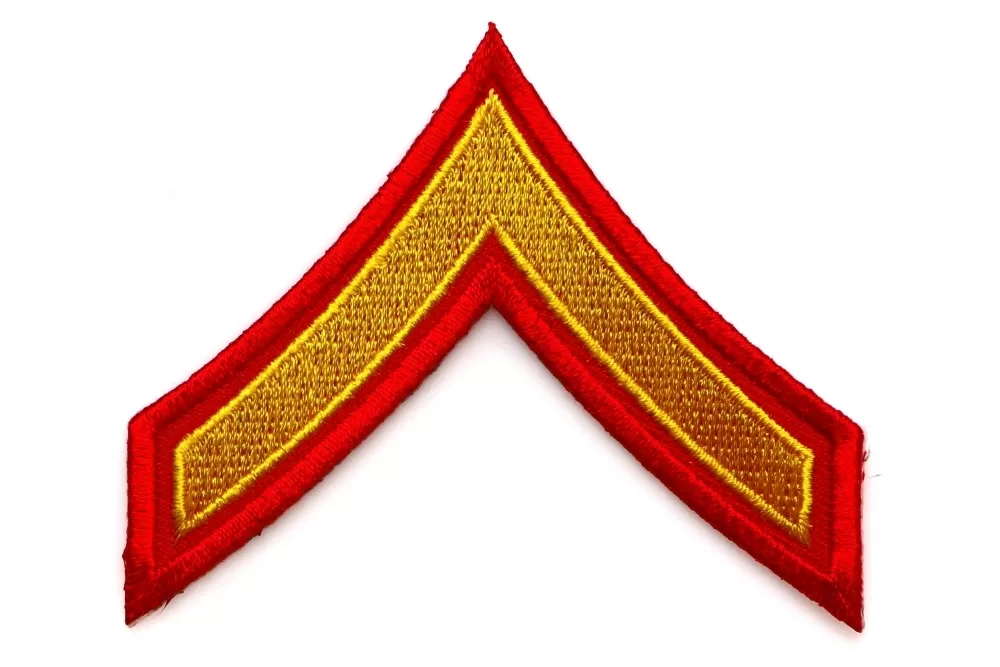 Private First Class Patch Marines measures 3x2.5 inches and is Embroidered in Red / Yellow. The Small Patch can be sewn on or ironed on to clothing such as Denim or Leather Jackets, Vests, Hats, Back Packs, Shirts. Features plastic backing and embroidered die cut borders.