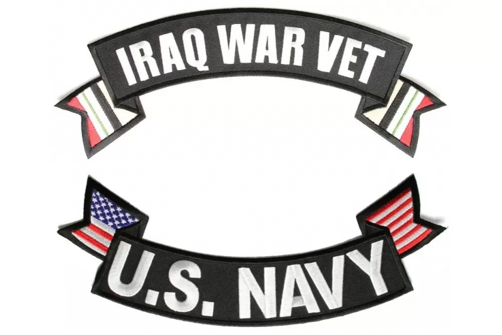Iraq War Vet US Navy 2 Piece Top and Bottom Large Rocker Patches Set - 11 inches, Embroidered