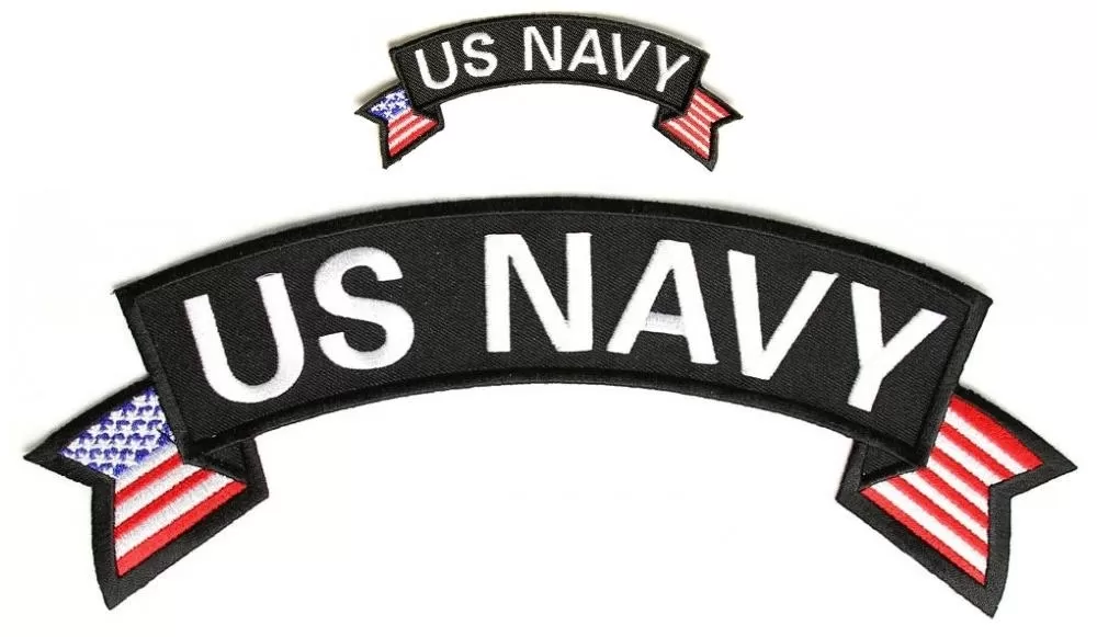 US Navy Small and Large Rocker Patch Set Of 2 With US Flag Tips