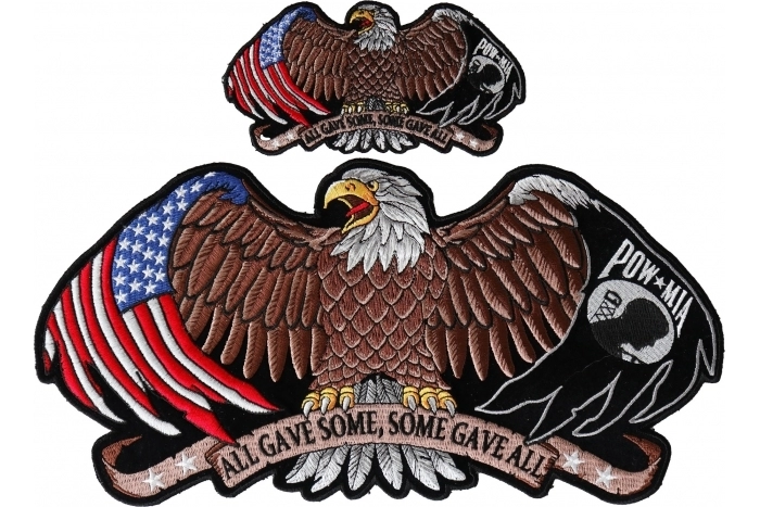 - POW MIA Eagle Patch Set of Small and Large Iron on Patches