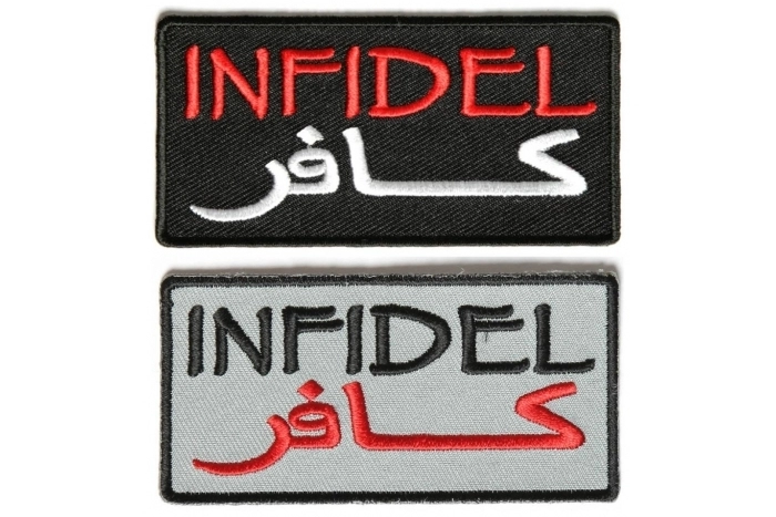 Small Infidel Patches Set Black and Gray With Arabic - 3.5 - 4 inches
