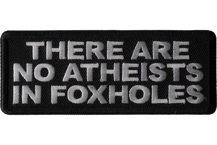 If you have served in the U.S. armed forces, you have undoubtedly heard that there are no atheists in foxholes. What say you? If you think it's true, we have an embroidered patch we think you'll enjoy. It is a small, 4 x 1.5-inch patch declaring that very message. It's the perfect size for a breast pocket or the back pocket of a pair of jeans.