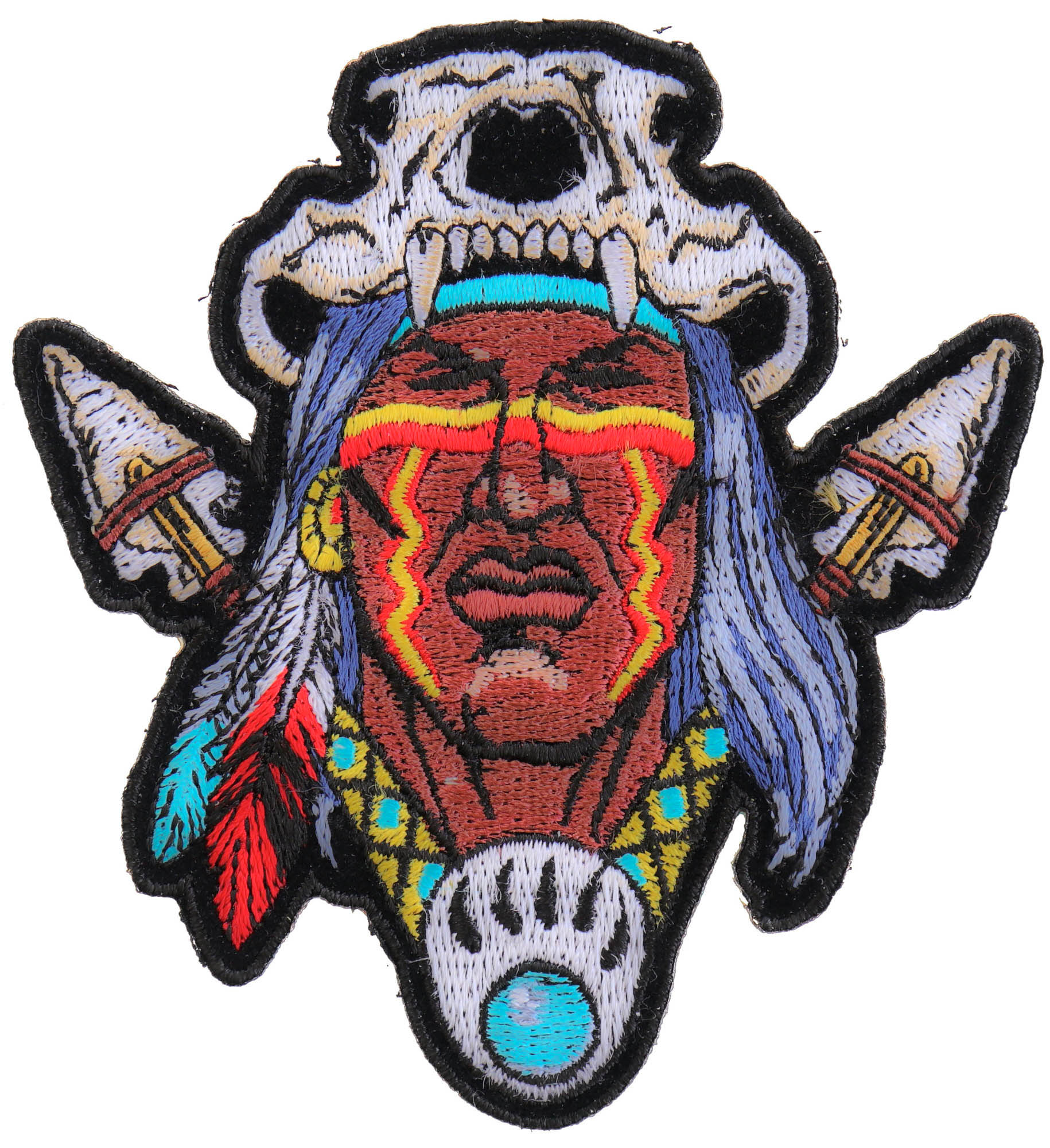 Indian with Arrows and Bear Skull Patch - 3.7x4 inch