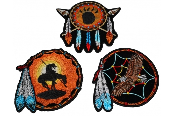 - Set of 3 Small Dreamcatcher Patches Native American Indian Designs