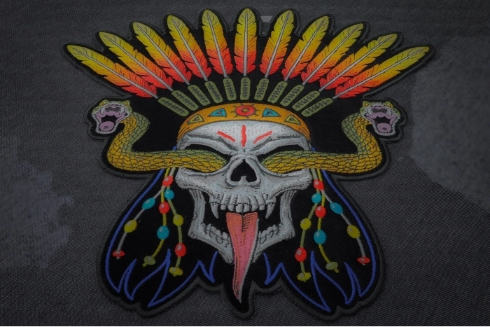 Snake Eye Skull with Feather Hat Patch - 12x12 inch