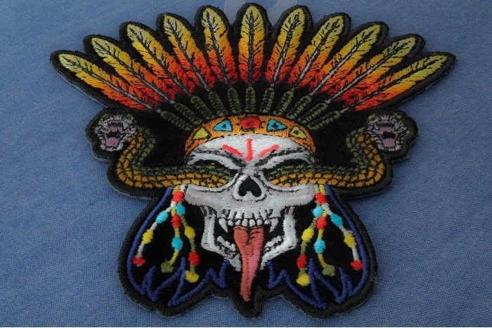 Snake Eye Skull and Feathers Patch - 4x4 inch