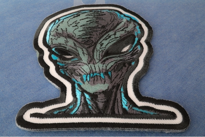 Alien Patch measures 3x3.9 inches and is Embroidered in Black / Blue. The patch can be sewn on to Leather Biker Jackets, Vests or Chaps. The patch can also be ironed on to Shirts, Hats or Denim material such as Jeans. Features plastic iron on backing and clean laser cut embroidered borders. Japanese made iron on glue requires temperature between 270-290 Degrees Fahrenheit. Use a heat press for 30 seconds to adhere the patch permanently to your clothing. Using a regular household iron will probably not be as permanent as one hopes. If possible we recommend you sew on your patches for a more durable application. Never iron on patches to Leather or Nylon materials.