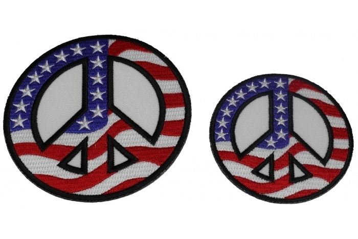 - American Flag Themed Peace Sign Patch - Pack of 2 Small and Medium Size