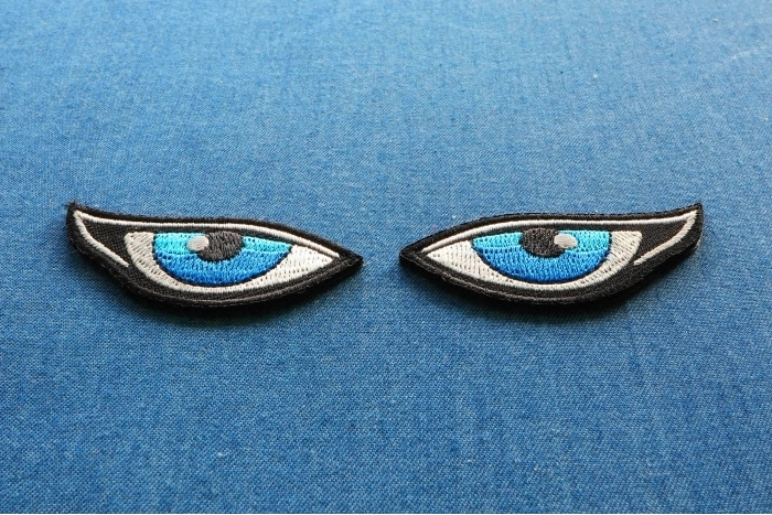 Blue Eyes Patches measures 4x1.7 inches and is Embroidered in Blue. The Small Patch can be sewn on or ironed on to clothing. You should sew patches on to leather jackets or vests. Refrain from ironing on patches to nylon or leather material. The correct iron on temperature is 270 degrees Fahrenheit. If you are using a household iron you should press down for 30 seconds. If you are using a heat press 12 seconds is sufficient. The patch features clean cut embroidered borders which will make it easy to sew on. We cannot recommend an iron setting which will yield you 270 degrees temperature. You can use a frying pan thermometer to find the correct setting of your iron. The temperature setting is very important. Plus or minus 10 degrees of variation is acceptable. But you should never go over 280 degrees Fahrenheit when ironing on the patch. Anything under 260 will also not activate the glue properly. The recommended 270 degrees Fahrenheit setting applies to all our iron on patches. We cannot speak for other manufacturers though. We spend the extra dime to use Japanese brand glue which works very well if applied at the right temperature.