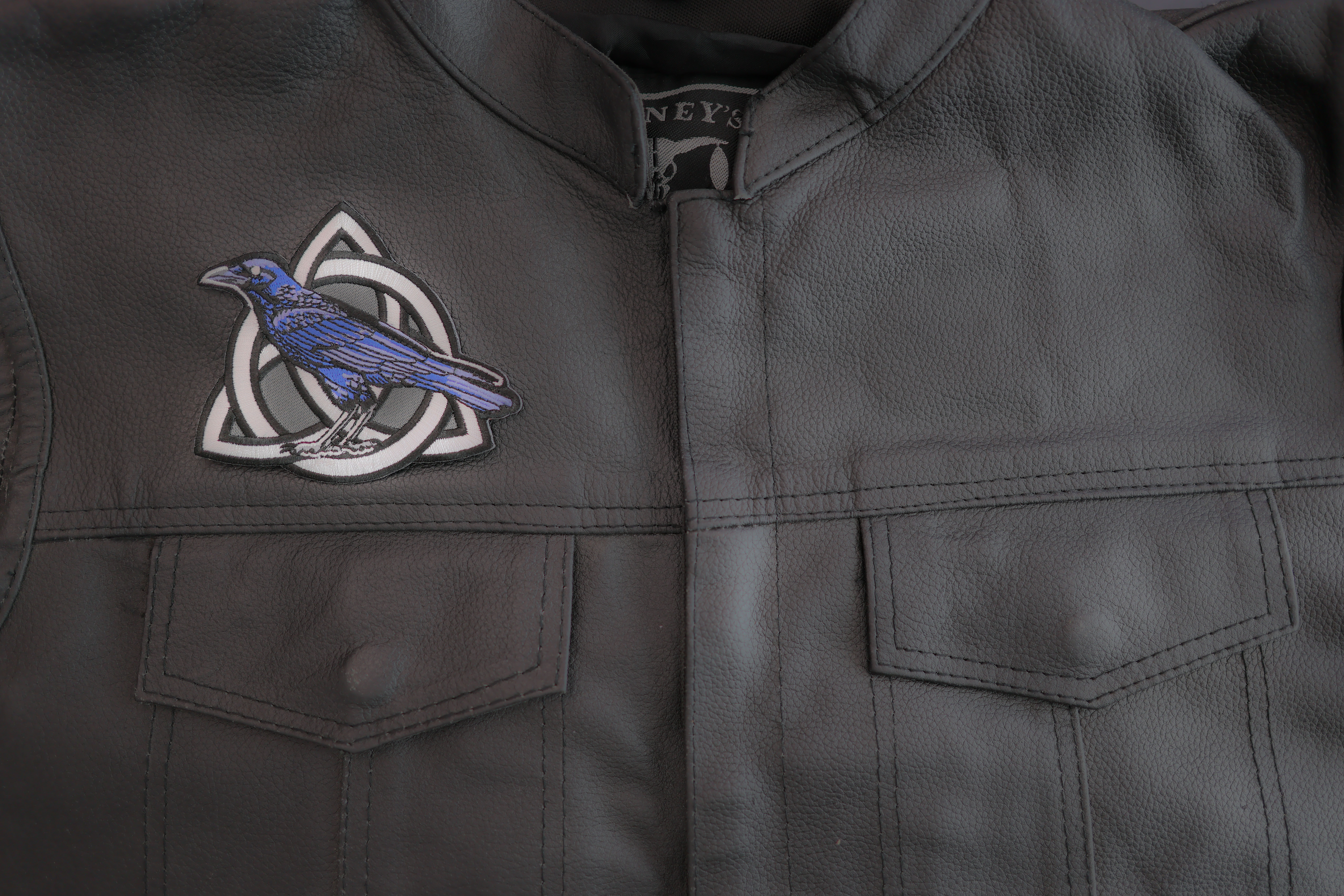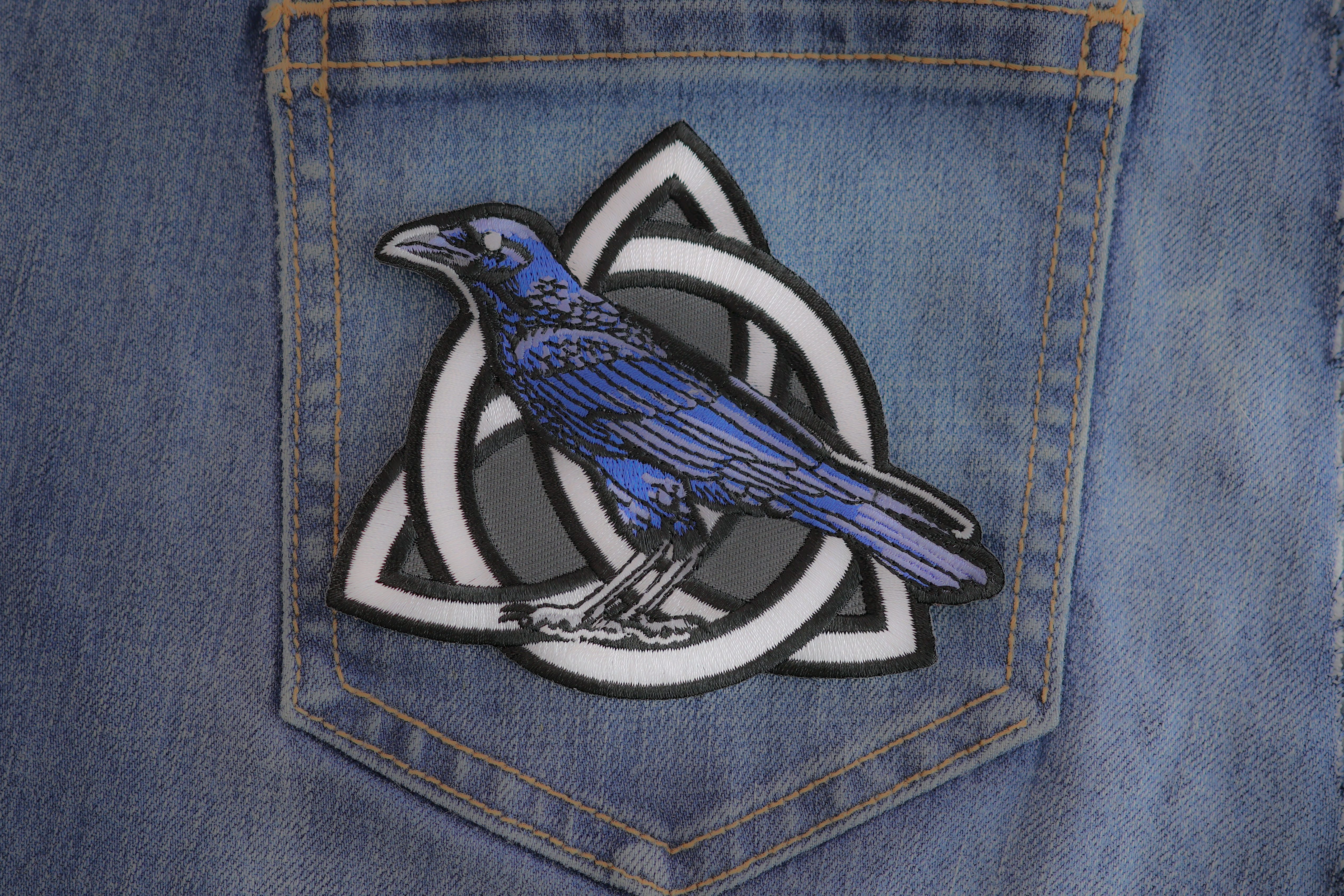 Celtic Crow Patch measures 4x4 inches and is Embroidered in Black / White / Gray. The patch can be sewn on to Leather Biker Jackets, Vests or Chaps. The patch can also be ironed on to Shirts, Hats or Denim material such as Jeans. Features plastic iron on backing and clean laser cut embroidered borders. Japanese made iron on glue requires temperature between 270-290 Degrees Fahrenheit. Use a heat press for 30 seconds to adhere the patch permanently to your clothing. Using a regular household iron will probably not be as permanent as one hopes. If possible we recommend you sew on your patches for a more durable application. Never iron on patches to Leather or Nylon materials.
