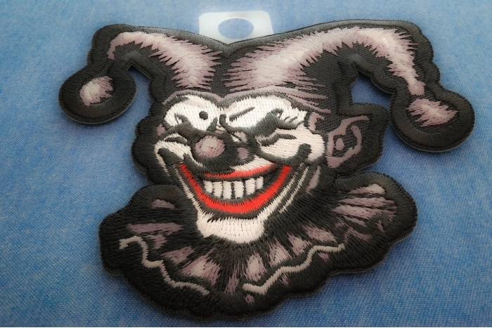 Gray Clown Patch measures 4x3.75 inches and is Embroidered in Black / White / Gray / Red. The patch can be sewn on to Leather Biker Jackets, Vests or Chaps. The patch can also be ironed on to Shirts, Hats or Denim material such as Jeans. Features plastic iron on backing and clean laser cut embroidered borders. Japanese made iron on glue requires temperature between 270-290 Degrees Fahrenheit. Use a heat press for 30 seconds to adhere the patch permanently to your clothing. Using a regular household iron will probably not be as permanent as one hopes. If possible we recommend you sew on your patches for a more durable application. Never iron on patches to Leather or Nylon materials.