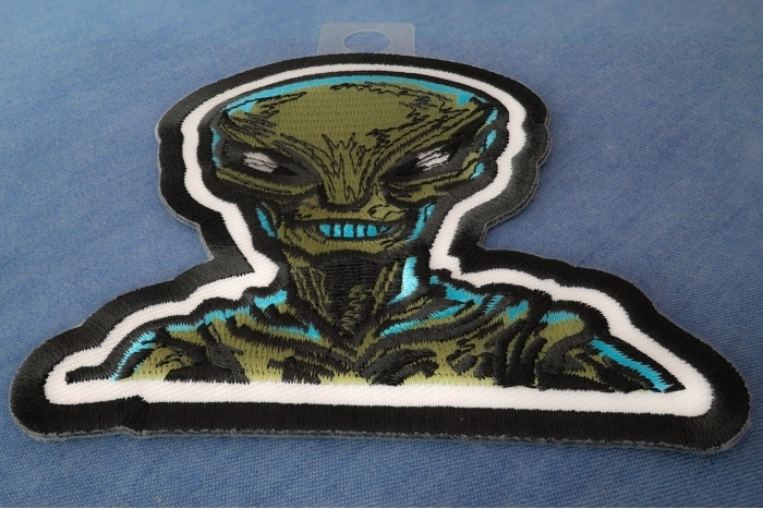 Green Alien Patch measures 3.8x4 inches and is Embroidered in Black / Green. The patch can be sewn on to Leather Biker Jackets, Vests or Chaps. The patch can also be ironed on to Shirts, Hats or Denim material such as Jeans. Features plastic iron on backing and clean laser cut embroidered borders. Japanese made iron on glue requires temperature between 270-290 Degrees Fahrenheit. Use a heat press for 30 seconds to adhere the patch permanently to your clothing. Using a regular household iron will probably not be as permanent as one hopes. If possible we recommend you sew on your patches for a more durable application. Never iron on patches to Leather or Nylon materials.