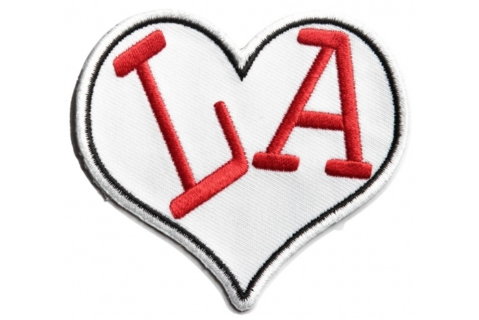 I love LA Heart Patch measures 3x3 inches and is Embroidered in Black / White / Red. The Small Patch can be sewn on or ironed on to clothing such as Denim or Leather Jackets, Vests, Hats, Back Packs, Shirts. Features plastic backing and embroidered die cut borders.