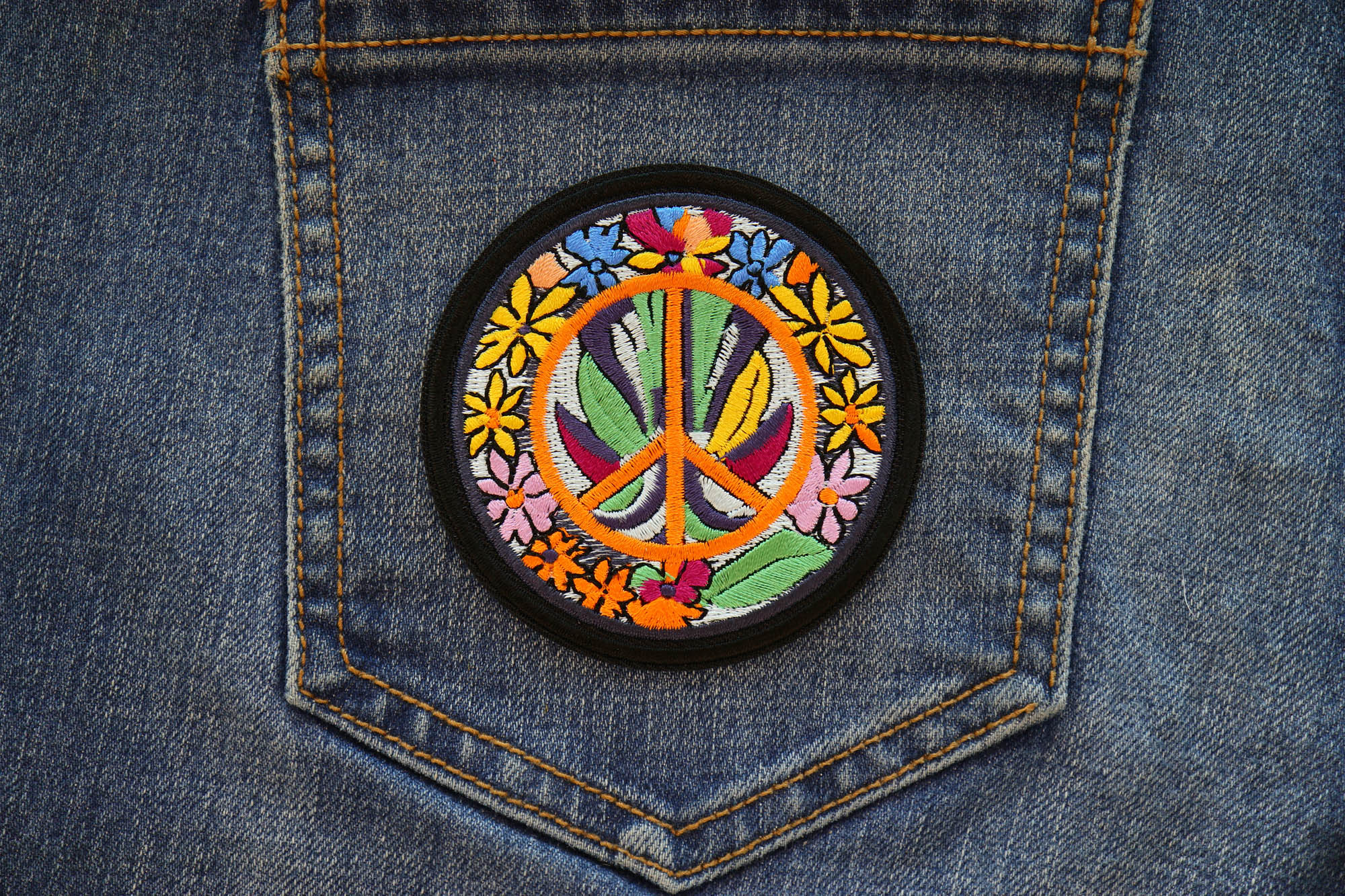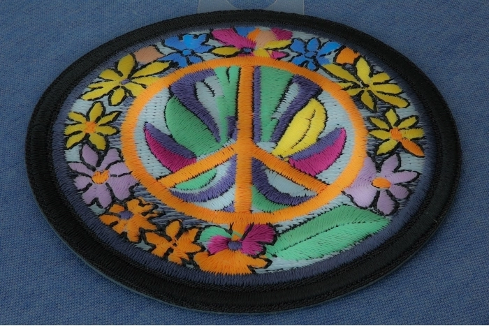 At the center of it all is the well-known peace sign made popular in the 1960s. Being that both the patch and peace sign are circular, the peace sign might get lost in all those flowers. But that's about par for the course when you're tripping!