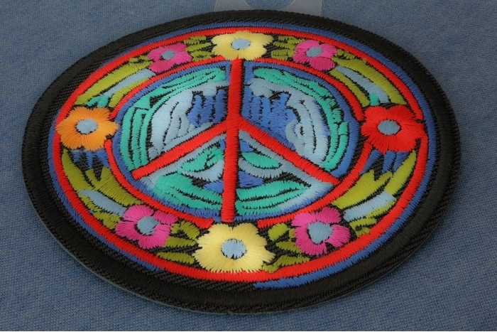 Hippie Daisies Peace Patch Embroidered measures 3x3 inches and is Embroidered in Black / Red / Blue. The patch can be sewn on to Leather Biker Jackets, Vests or Chaps. The patch can also be ironed on to Shirts, Hats or Denim material such as Jeans. Features plastic iron on backing and clean laser cut embroidered borders. Japanese made iron on glue requires temperature between 270-290 Degrees Fahrenheit. Use a heat press for 30 seconds to adhere the patch permanently to your clothing. Using a regular household iron will probably not be as permanent as one hopes. If possible we recommend you sew on your patches for a more durable application. Never iron on patches to Leather or Nylon materials.