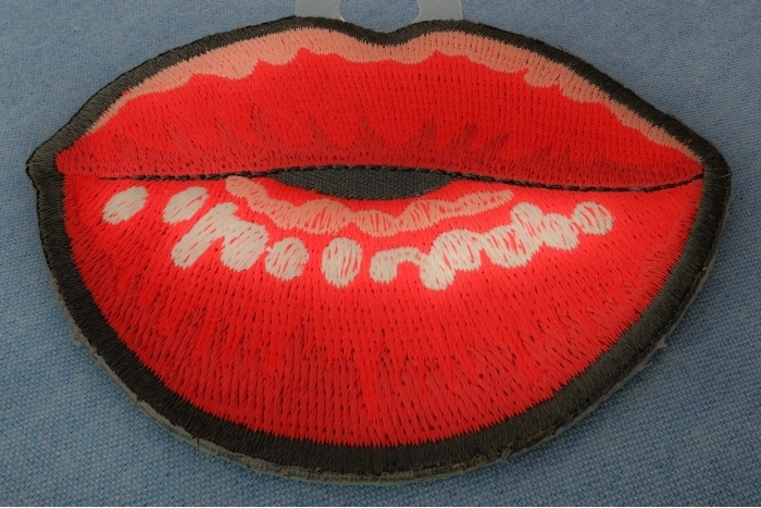 Kissing Lips Small Patch measures 3x2.7 inches. It is embroidered in shades of red pink and white. There is also a medium size version of these lips which is 4 inches wide. You asked for it and we made it. Arturo came up with this design in October of 2018, A bright red lips blowing a kiss is what it is. We should have named it the Kiss me Patch. It's a great addition to our novelty patches category.