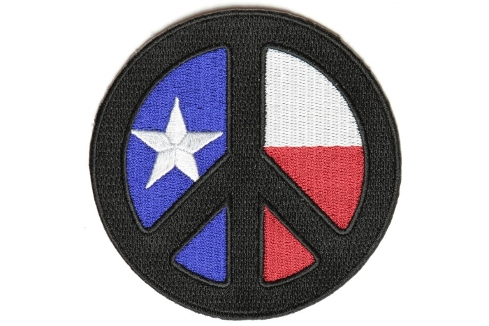 Black Texas Peace Patch measures 3.5x3.5 inches and is Embroidered in Black / White / Red / Blue. The Small Patch can be sewn on or ironed on to clothing such as Denim or Leather Jackets, Vests, Hats, Back Packs, Shirts. Features plastic backing and embroidered die cut borders.