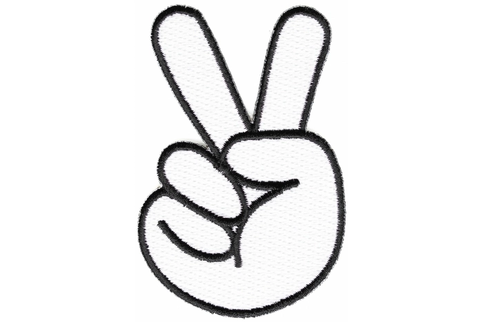 Peace Hand Sign in White Iron on Patch - 2x3 inch