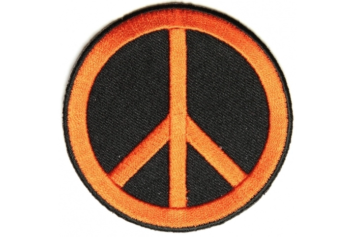 Peace Sign Patch Orange on Black measures 3x3 inches and is Embroidered in Black / Orange. The Small Patch can be sewn on or ironed on to clothing such as Denim or Leather Jackets, Vests, Hats, Back Packs, Shirts. Features plastic backing and embroidered die cut borders.